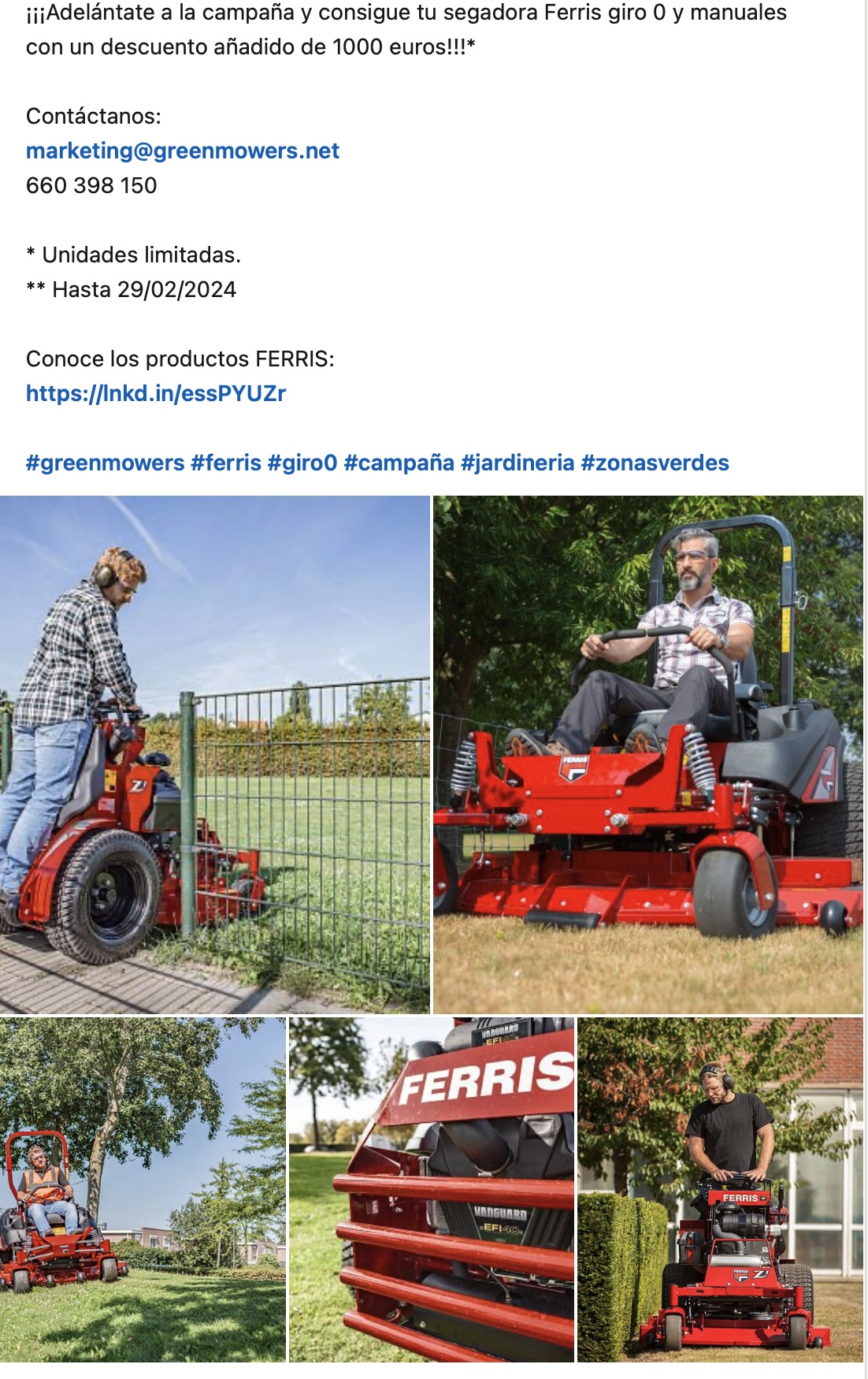 Burgos, 13 de marzo del 2024.- Green Mowers han lanzado numerosos productos y servicios con todas las novedades que han presentado las marcas que comercializa. Durante las últimas semanas estas son las principales campañas: